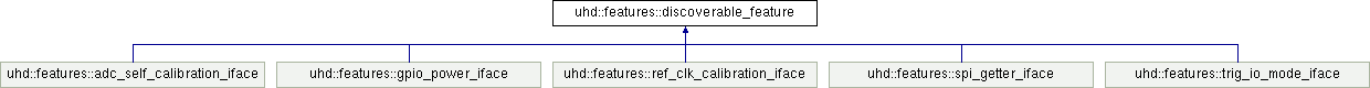 Implemented in uhd::features::spi_getter_iface, uhd::features::gpio_power_iface, uhd::features::ref_clk_calibration_iface, uhd::features::trig_io_mode_iface, and uhd::features::adc_self_calibration_iface.